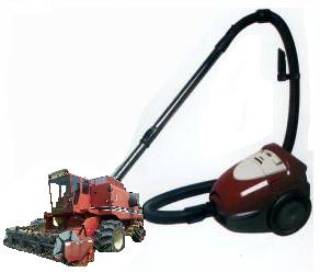 En quoi consiste donc l’Aspiro-Moissonneuse. Tout simplement en un accouplement entre un aspirateur et une moissonneuse-batteuse (après ça, qui pourra nier les progrès de la génétique ?). Ainsi, la poussière, au lieu d’être accumulée dans un infâme sac en papier, en attendant d’être extrait de l’appareil par vous madame, est directement envoyé dans une minipresse où dans un emballage plastique elle est comprimée à haute pression et est ligoté en petits ballots (très propres) qui seront automatiquement expulsés sur votre moquette. Une fois le ballot évacué, l’opération recommence mécaniquement pendant toute la durée du ménage.