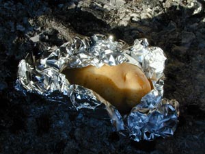 Nom de nom ! des pommes de terre en papillote ! Et bien cuites en plus ! Redoutable ! Il n’y a plus qu’à récupérer les pommes de terre dans la braise, les sortir du papier alu, et les servir avec vos grillades !!!